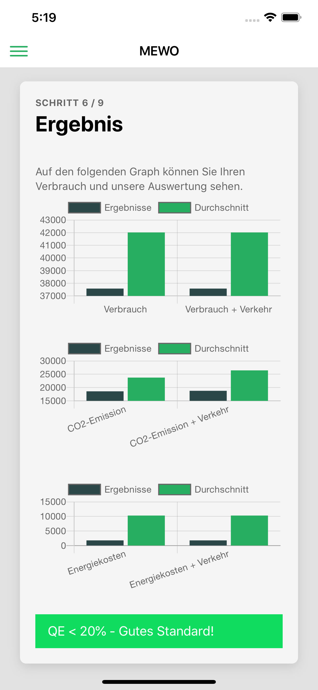 Die Applikation MeWo - "my environment works out" ist eine Anwendung zur schnellen Erkennung des eigenen Energieverbrauchs im Vergleich zu Durchschnittswerten. Durch die Eingabe von Gebäude-spezifischen oder branchenspezifischen Daten zum Objekt und des dazugehörenden Energieverbrauchs, der Auswahl zur Berücksichtigung des Verkehrs sowie die Angabe von Leistungsdaten von Eigenerzeugungsanlagen werden dem Nutzer Länder-orientierte Vergleichswerte zur Verfügung gestellt. Die Ergebnisse zeigen die Einordnung der jährlichen Energieverbrauchsdaten, der CO2-Emissionen sowie der Energiekosten. Durch Eingabe des gewünschten Sanierungsstandards kommen die Ergebnisse den persönlichen Bedürfnissen angepasst werden.